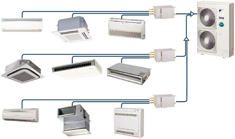 главное отличие VRV от остальных систем кондиционирования — использование общей системы трубопроводов.