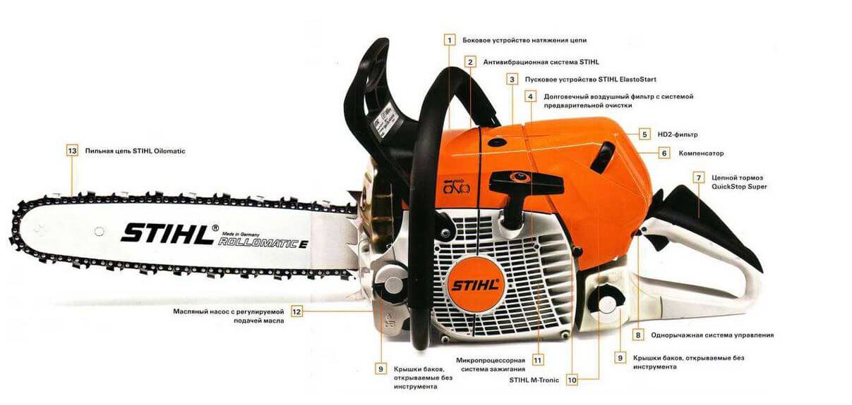 Бензопила Штиль МС-660 имеет сложное устройство, обращение с техникой требует соблюдения ряда правил и мер безопасности.