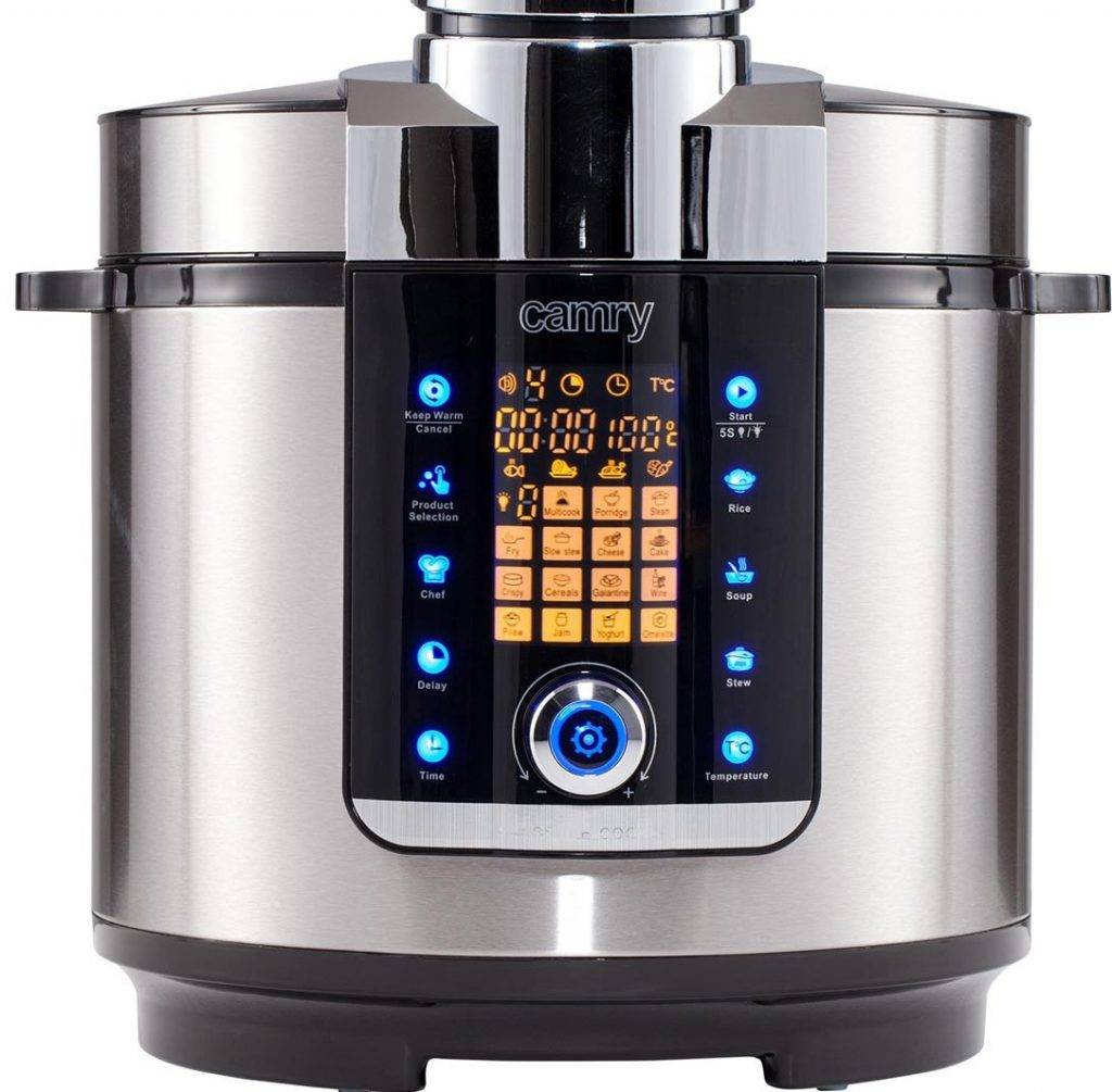 Модель достаточно большая, вмещает 6 л, поэтому ее можно купить для большой семьи. Управление электронное, настройки задаются кнопками. Если заводских программ недостаточно, можно установить свои параметры.