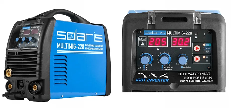 Иногда производители предусматривают возможность применения сварочных аппаратов для различных способов сварки. Для этого на панели управления предусматривают специальный переключатель режимов сварки MIG, MAG, TIG, MMA. Из текста выше мы уже понимаем, что включение режима сварки меняет вольт-амперную характеристику сварочного аппарата и иногда добавляет возможность корректировать какие-то дополнительные параметры. При этом, если у вас есть только источник питания, то для выполнения сварки в режиме MIG или MAG необходимо дополнительно приобретать подающий механизм, сварочную горелку, баллон с газом или сварочной смесью, редуктор или расходомер газа и не забудьте о сварной проволоке. Конечно, можно применять сварку порошковой проволокой без газа, но это очень вредно для здоровья.