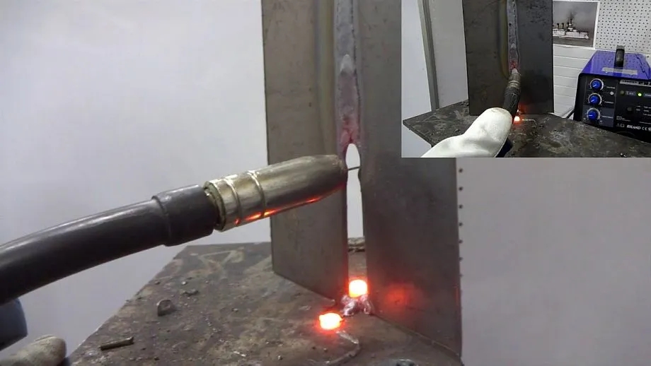 Чтобы проверить, все ли настроено правильно, нужно сделать пробную сварку. Для этого проволока немного прокручивается вперед, открывается заслонка для подачи флюса и нажимается пусковая кнопка. Пробную сварку полуавтоматом без газа можно делать сколько угодно раз, пока все не будет налажено — дуга не будет стабильна, проволока не будет свободно подаваться.