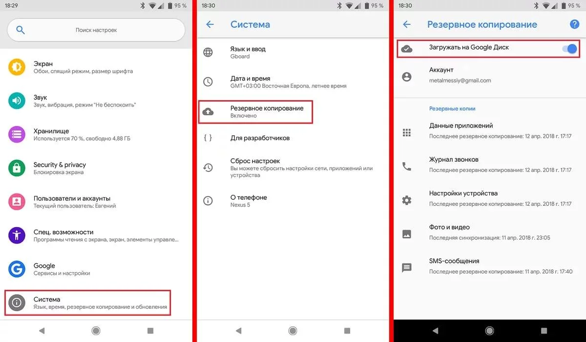 Когда бэкап не восстанавливается в автоматическом режиме, следует выполнить операцию вручную. Потребуется открыть настройки, перейти в раздел «Система» и активировать функцию загрузки резервной копии.