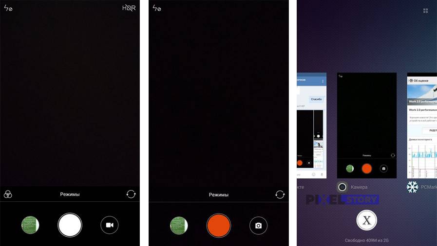 Для того, чтобы поймать хороший кадр, есть режим серийной съемки, который активируется при удержании сенсорной кнопки спуска затвора и позволяет снимать около 8 кадров в секунду, до тех пор пока вы не снимите палец с экрана.